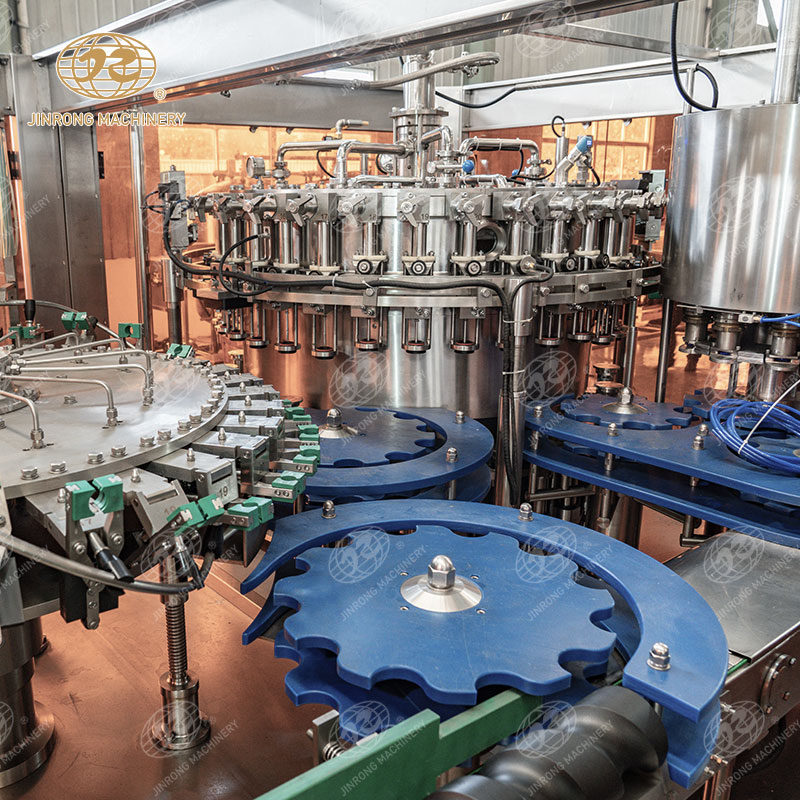 玻璃瓶碳酸飲料生產(chǎn)線上,不僅僅是灌裝部分,還需要其余的自動化設(shè)備進行配合生產(chǎn),才能完成二氧化碳氣體飲料的制造。主要采用純凈水用于配料后的口感更好。