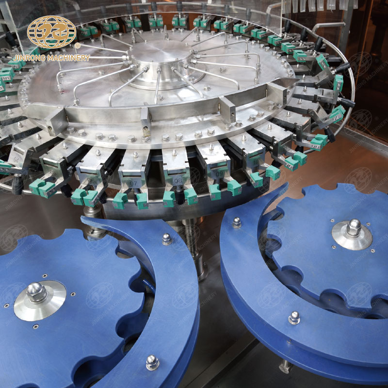 三合一含汽飲料灌裝機集清洗、灌裝、旋蓋于一體的灌裝設(shè)備,成套飲料生產(chǎn)線適合汽水、可樂、蘇打水、氣泡水等。玻璃瓶含汽飲料灌裝機組內(nèi)部一次完成洗瓶、灌裝、封蓋三道工序,瓶子磨損小、傳動準確平穩(wěn)、瓶型更換便捷。